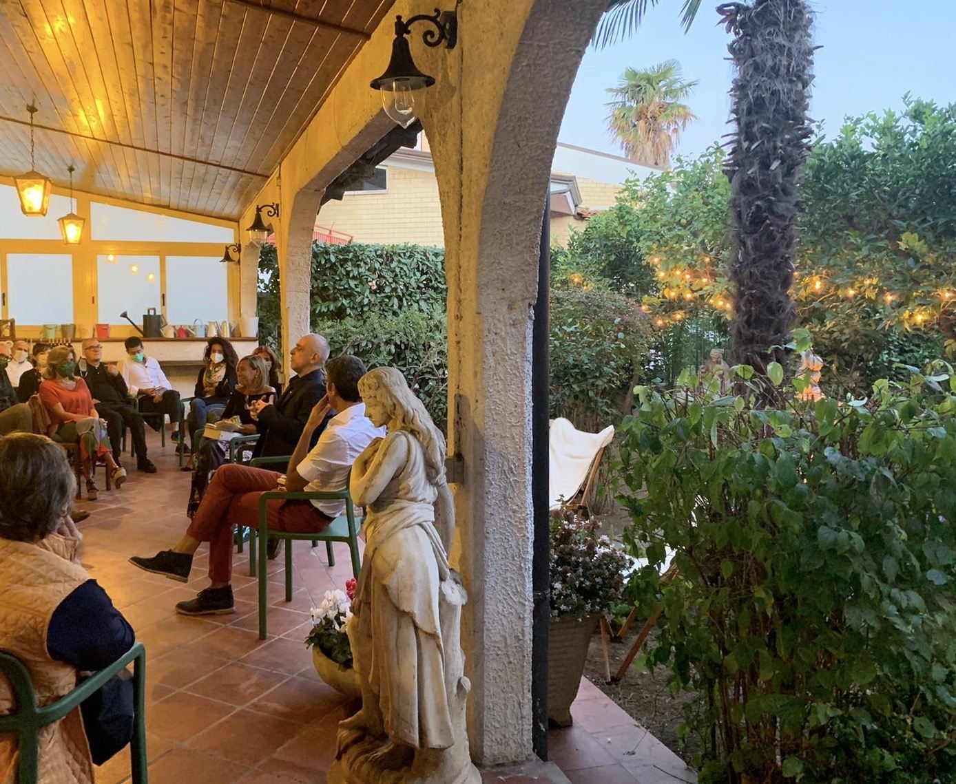 La serata si è conclusa con un senso di gratitudine e di leggerezza: la consapevolezza che, anche nei momenti più difficili, la letteratura sa trovare la via del cuore, sa uscire dagli spazi istituzionali per tornare dove tutto nasce — tra le voci, i volti, le piante e i silenzi di un giardino.